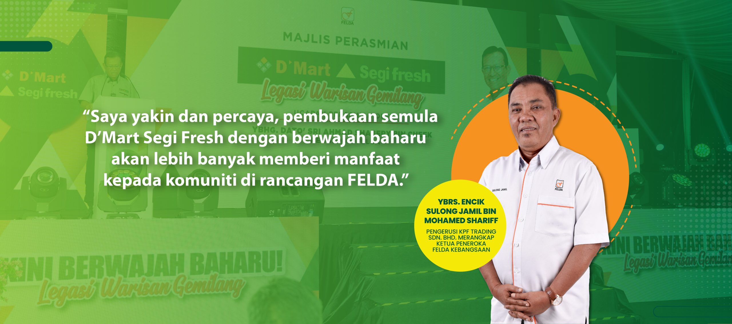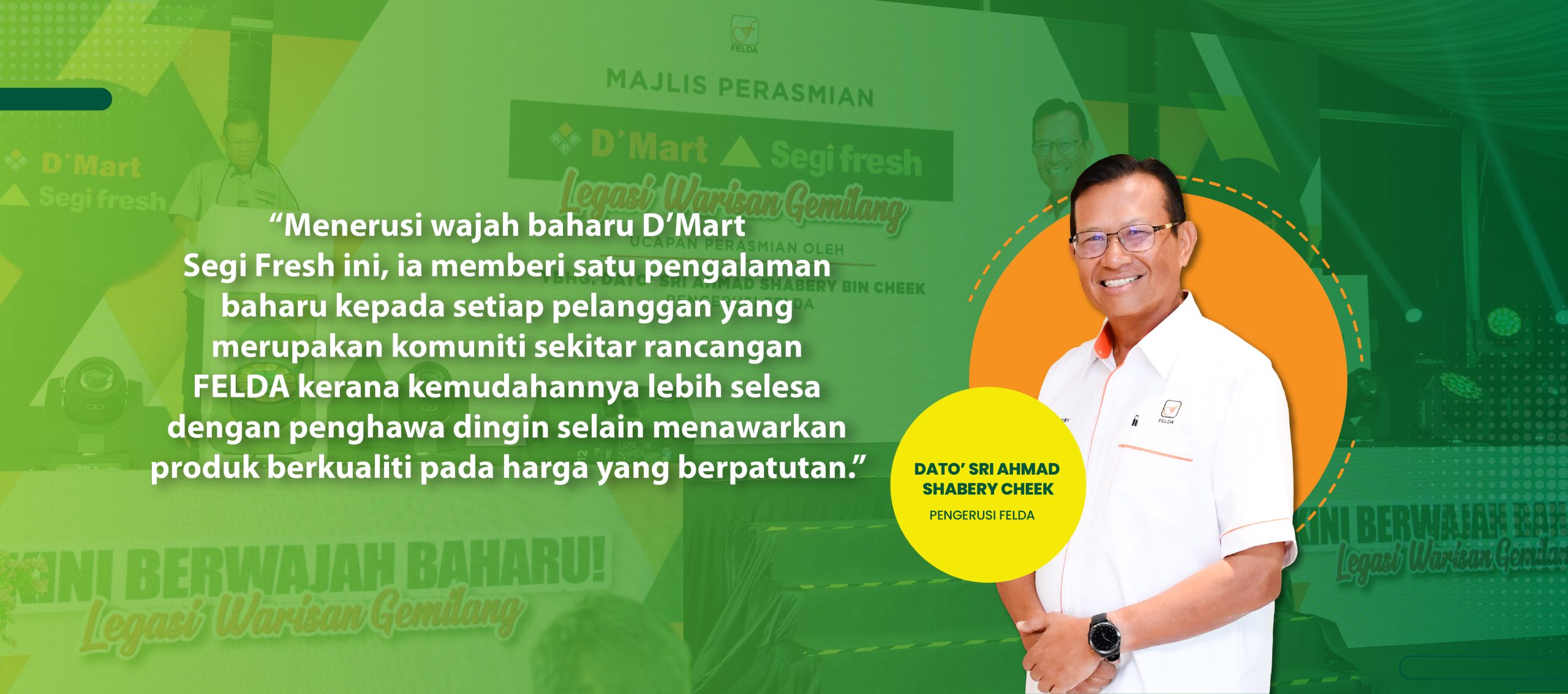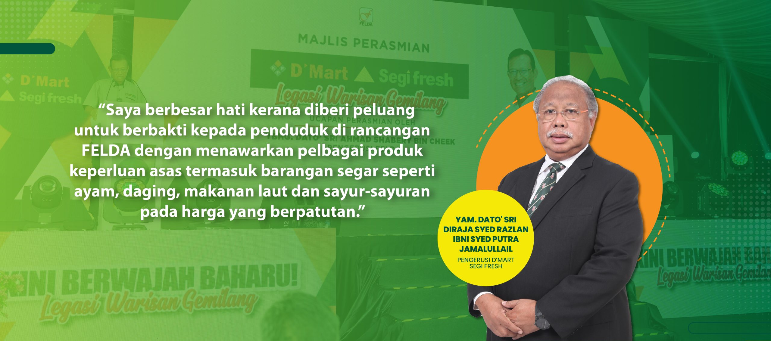 Kami menerima maklumbalas daripada peneroka-peneroka yang merupakan penduduk di kawasan sekitar rancangan FELDA yang mereka amat berpuas hati dengan kualiti serta harga barangan yang didapati di cawangan D’Mart Segi Fresh.